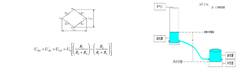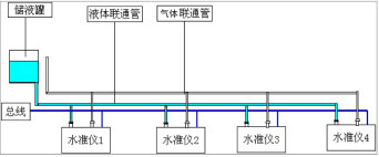 工作原理:各沉降監(jiān)測點安裝壓阻式靜力水準儀,并需要在一相對不動點安裝基準罐。傳感器之間通過高強度的氣壓管聯(lián)接一起匯入到基準罐,每個水準儀內部都安裝有高精硅壓傳感器,在基準罐與傳感器之間充滿液體介質,水準儀內的壓力傳感器感測到的是該點到基準罐液體表面的壓力,該壓力與液面高度有一定線性關系。如果壓力傳感器感測到壓力發(fā)生變化即說明該點與基準液面之間的高差發(fā)生變化,根據(jù)出廠前的壓力變化量與液面高差的標定線性表,靜力水準儀內部的單片機可以計算出高差變化值。根H=P/ρ*g計算出從測點到基準點液面到傳感器高度。原理示意圖如下: